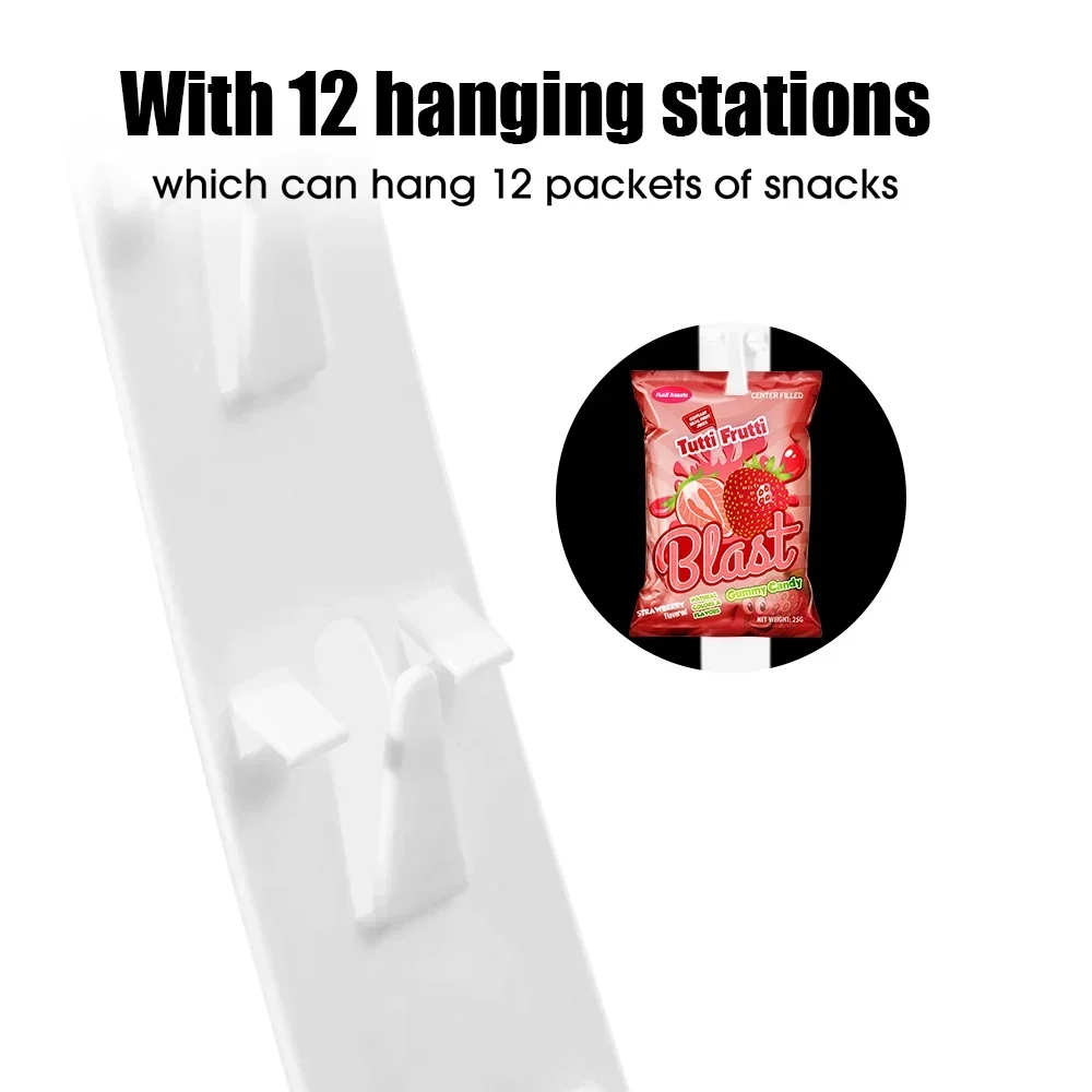 –Each belt is equipped with 12 hanging stations, which can hang 12 packets of snacks